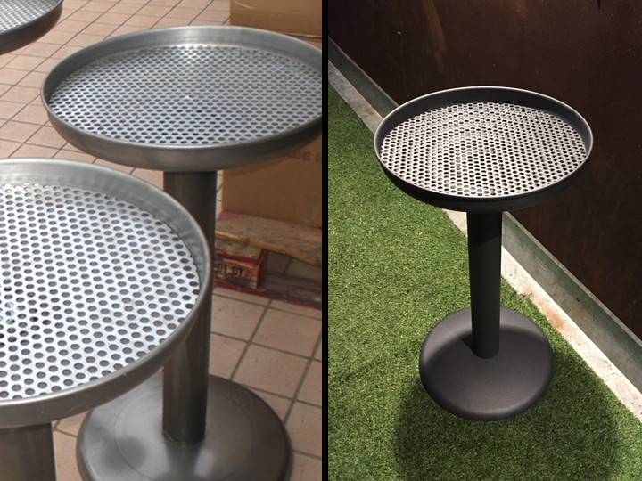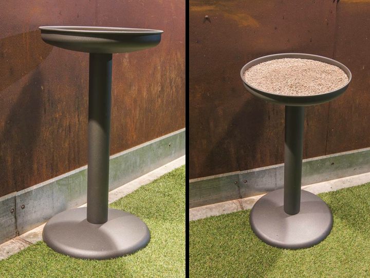 Posacenere da esterno ( d. 460 superiore ) realizzato interamente in lamiera verniciata a polveri, dotato di griglia interna per una pulizia rapida.